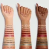 ترکیب رنگهای مات، متالیک و شیمر: ترکیبی از سایههای مات، متالیک و شیمر در این پالت، امکان ایجاد آرایشهای متنوع و جذاب را فراهم میکند.